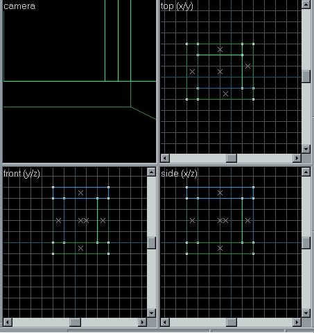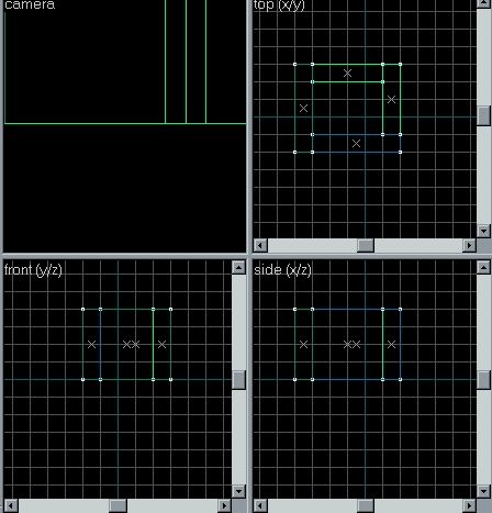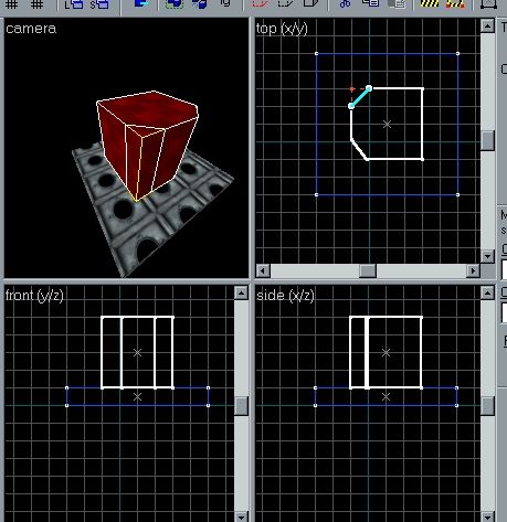 There are four viewpoints that provide windows onto the world you 're building. Each one presents a different view of the world. The upper left window shows you a Perspective view shot from a movable camera point in the level. The other three views have a fixed view camera that displays either Top, Front or Left view (going in clockwise order). You 'll spend a lot of time working with these views.