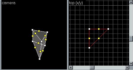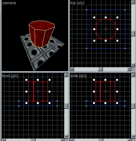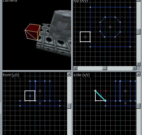 Another typical cause of high counts is intersecting brushes. Every place where one brush touches another, the processor splits the touched brush in order to remove the hidden sections of each brush. However, this can drive counts up very significantly. A large, square room that 's normally lit would be subdivided into a simple grid of square brushes. If you place a square column in the middle of the room, the rooms still split along a square grid, since the splits around the base of the square column run parallel to the grid of splits made for lighting. However, if you put down a 12 sided column in the middle of the room, split lines run out from each of the 12 vertices that make up the base of the column. These lines disrupt the even pattern that existed before and scatter new brush splits throughout the room. You can observe this by using the r_drawflat 1 and gl_wireframe 2 console commands.