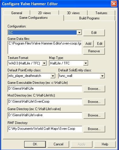 It controls all the little things that are important for WC to actually find the supposed files you are trying to compile with. Now, until you load the sven coop fdg file, your screen won 't look the same. But when you do, you should have a pretty fair approximation. Set all your variables to the same as are shown here. Excepting of course, where you have things in a different directory. (To add the SC "Configuration"Click edit, then click add, the type the name in. Once toy do that click close)