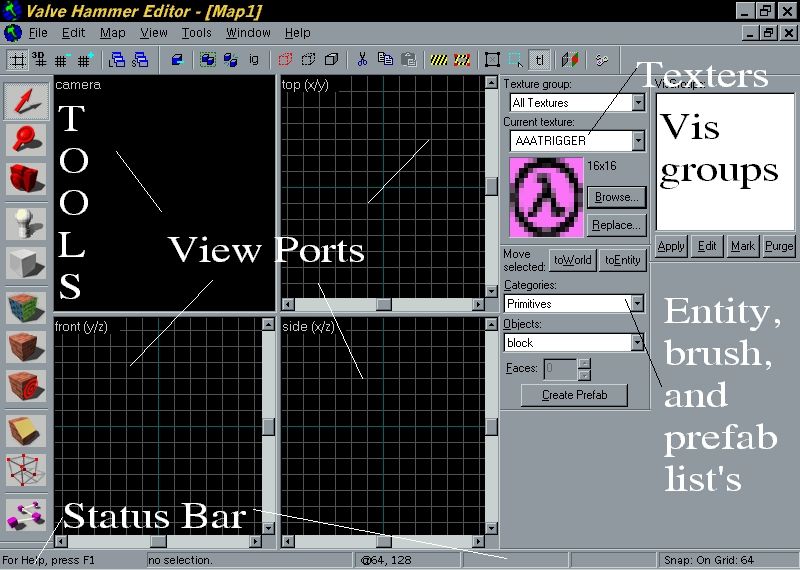 Welcome to the Valve Hammer Editor (hammer /wc) overview and tutorial. Hammer is the tool created by Valve that enabled the Half Life community Level Designers and Artists to create the geometry and game play you experienced in Half Life, or one of its MODs. Hammer allows you to build the ground, sky, walls, ceilings and shapes for your levels. You will then apply textures, props, prefabs, lights and sounds to give them a realistic appearance. Half Life was created using literally thousands of these assets which you may appropriate to create the base for your own level. You may also add your own assets where applicable. Finally, you 'll add the game objects that allow other players to interact with your world.